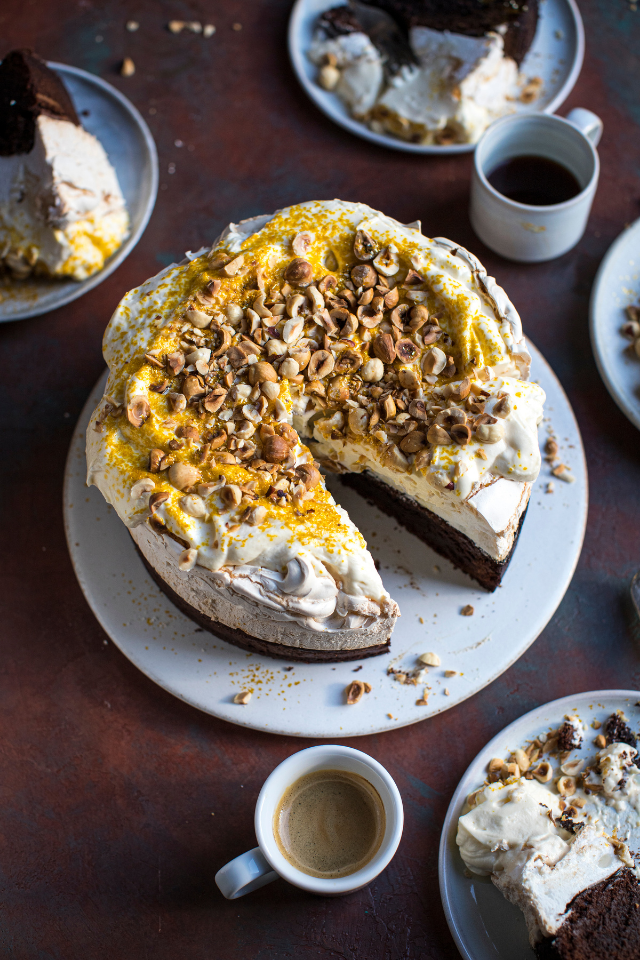 A Christmas treat for the adults, this nutty, Boozy Brownie Meringue Cake is devine!