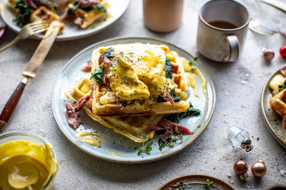 Topped with poached egg and a delicious hollandaise sauce, this Christmas Waffles Brunch could be your next Christmas tradition!